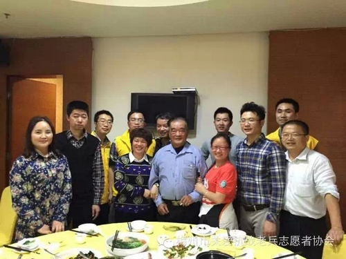 另外,深圳志愿者邀请了抗战老兵黎锋老爷爷一起用餐。黎老爷爷今年已经93岁,抗战时是炮兵,打仗的时候耳朵受伤,不好使,大家跟他交流的时候,必须非常大声他才能听得到,似乎跟他吵架似的。黎爷爷是个非常健谈的人,据说他在参加的一次座谈会中发言长达3个小时,席间,他跟我们讲述了他年轻时候的一些故事,引得在座的人都捧腹大笑。
