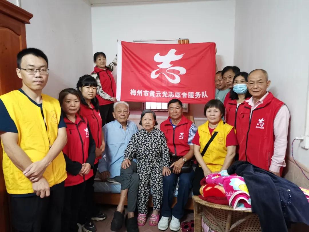 近日,梅州市关爱抗战老兵志愿者协会的部分志愿者。在白渡关爱组队长黄云光的带领下会同黄云光服务队的志愿者们,一行14人,带着协会和服务队的满满关爱、伙伴们深深的祝福前往白渡镇看望:吴茂文、宋桂文俩位抗战老兵爷爷。一起聆听老兵讲述抗战故事,感悟老兵精神。代表梅州市关爱抗战老兵志愿者协会送上协会的致敬金和叶剑英基金会的关爱金。