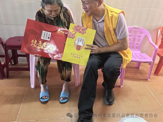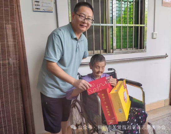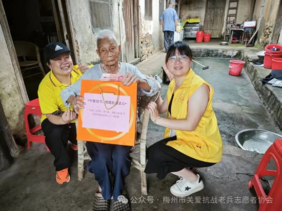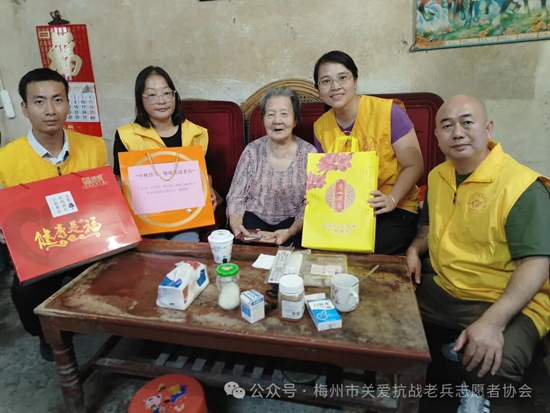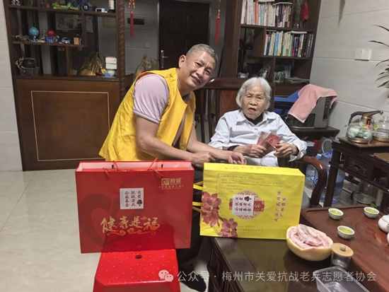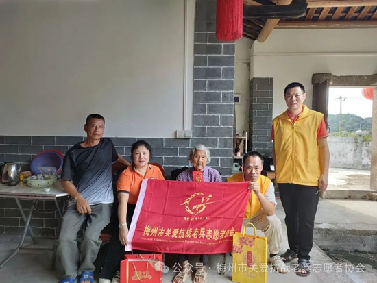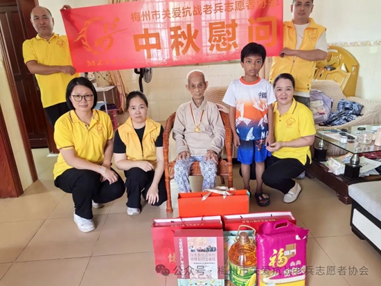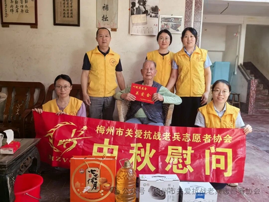 在一年一度的中秋佳节即将到来之际,为记录抗战老兵鲜为人知的抗战故事,感受民族英雄保家卫国的坚贞决心,表达我们年轻一代的崇敬之心。近日一群穿着黄马甲的梅州市关爱抗战老兵志愿者协会的志愿者们,在协会的精心组织下,带着广东省雁洋公益基金会叶剑英基金、梅州市关爱抗战老兵志愿者协会致敬金、关爱抗战老兵公益基金、关爱抗战老兵广东团队、廖国聪先生等各界社会爱心团体爱心人士赞助的礼品和慰问金,为全国各地梅州籍及部分省市的抗战老兵和抗战老兵遗属送去协会的牵挂与关切。并转达协会名誉会长,广东威华集团董事长李建华先生,会长李剑明先生的问候与祝福。