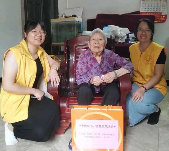 兴宁服务队对区域内抗战老兵和遗孀进行中秋慰问,老兵向志愿者们讲述了自己当年的抗战经历,在讲述中重拾当年卫国勇士的荣耀,全体志愿者都认真倾听,纷纷动容,表示要向老兵爷爷学习他们的民族精神、英雄气概和坚强意志。
