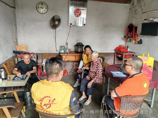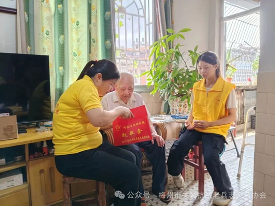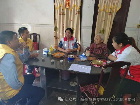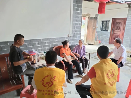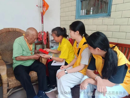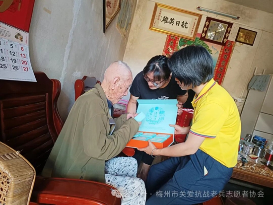 梅县、梅江区服务队各小组召集志愿者,利用周末等时间,上门看望抗战老兵和抗战老兵遗孀,将广东省雁洋公益基金会叶剑英基金关爱金,梅州市关爱抗战老兵志愿者协会致敬金、社会各界爱心团体爱心人士赞助的礼品和慰问金等亲手送到老兵和家属手上,让老兵爷爷和老兵遗孀感受到浓浓的节日氛围和快乐。