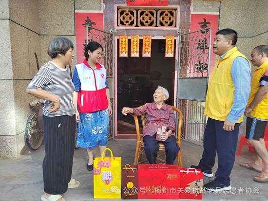 五华服务队的志愿者这几天在区域内看望抗战老兵爷爷和老兵遗孀,为他们送去雁洋公益基金会叶剑英基金的关爱金和梅州市关爱抗战老兵志愿者协会的致敬金,社会各界爱心团体爱心人士赞助的礼品和慰问金,祝福老兵爷爷和老奶奶身体健康,幸福长寿。